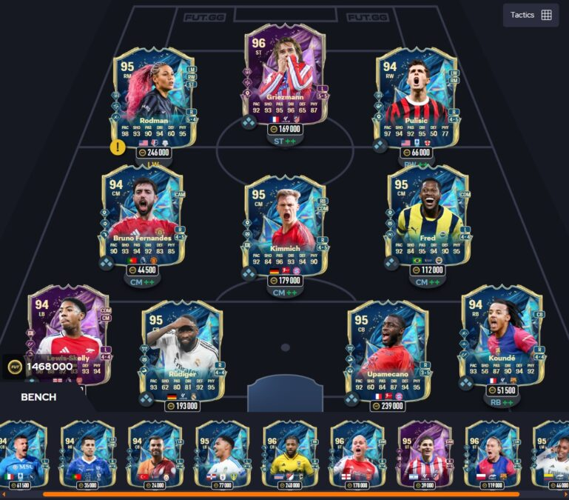 Nos préférences personnelles incluent tout particulièrement la carte de Griezmann, qui offre un rapport qualité-prix exceptionnel. Son utilisation optimale se fait dans une formation à deux attaquants, où il peut jouer un rôle de relai efficace. Upamecano, quant à lui, constitue une option défensive très solide pour le poste de défenseur central, rivalisant presque avec des cartes plus onéreuses telles que Saliba, Renard ou Pacho.
