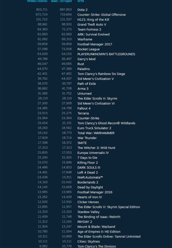 Что касается текущего количества активных игроков, то лидируют игры, упомянутые выше, показывая стабильную популярность среди аудитории.
