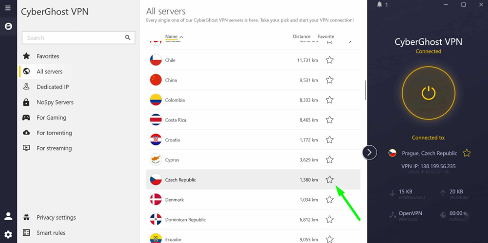 - CyberGhost : Features fast and reliable Czech servers, advanced security, and user-friendly apps.
