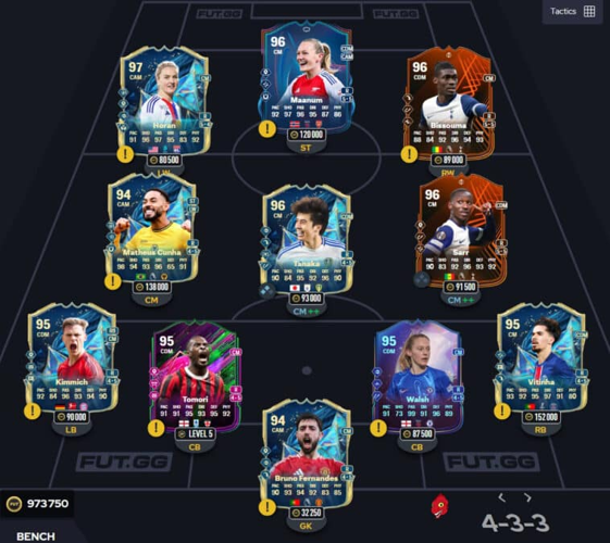 Pour une complémentarité parfaite, Tomori du Pass de Saison constitue une excellente addition, notamment si vous souhaitez former un duo solide en défense centrale. En ce qui concerne les milieux centraux ou offensifs, Bruno Fernandes Tots s’est imposé comme une référence sur le marché. Avec un prix abordable, ce joueur portugais offre une stature impressionnante, un style de jeu fluide et des statistiques remarquables, faisant de lui un choix privilégié pour dynamiser votre milieu.