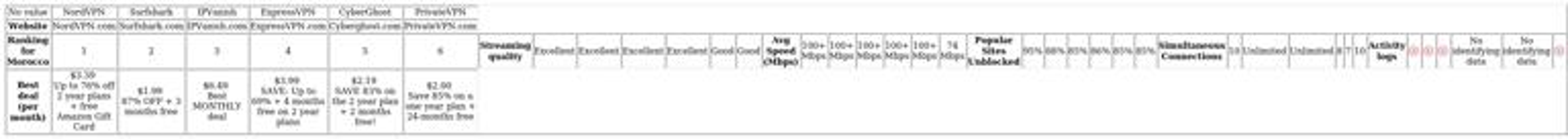 This summary provides an overview, but you can find more detailed information in our methodology section. For in-depth reviews, start with NordVPN, our top choice for Morocco.
