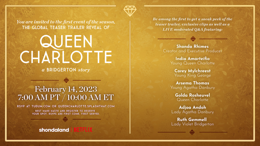 Join us for the exclusive virtual premiere of "Queen Charlotte" - the highly anticipated Bridgerton prequel series!