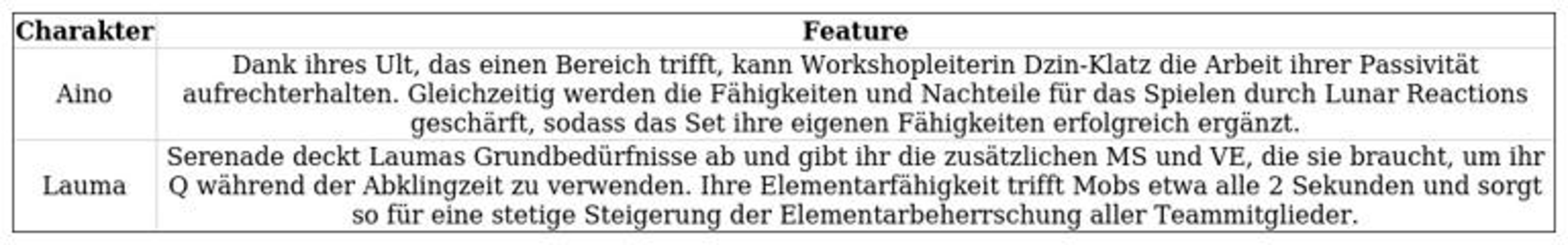 Die genauen Boni des Sets werden durch die Zusammensetzung der Teammitglieder und deren Fähigkeiten bestimmt, wobei die Strategie auf die Nutzung der Mondzeichen und die regelmäßige Elementar-Interaktion abgestimmt sein sollte.