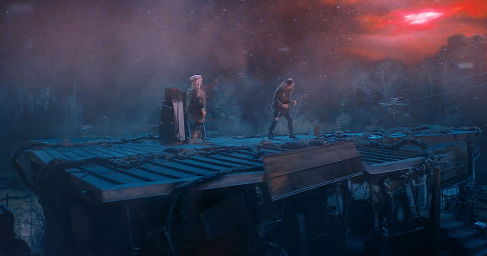 2) Eddie Munson’s defiant, full-throttle guitar stand — metal versus monsters in a scene of pure adrenaline.