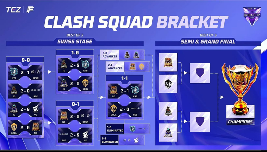 The teams finishing at the lower end of the Swiss stage—Reckoning Esports, Kar98, Gods Reign, and Vasista Esports—were eliminated from the competition.