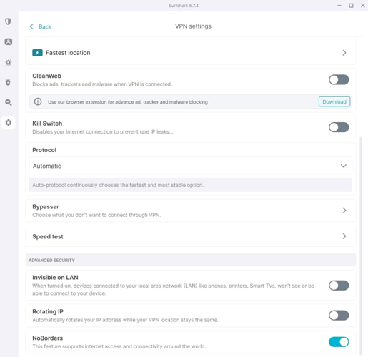If you want to reduce the chances of being traced, Surfshark’s IP-rotation option automatically cycles your IP while you remain connected to a chosen location.