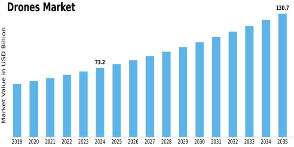 USD 73.13 Billion is the Drones Market in 2024