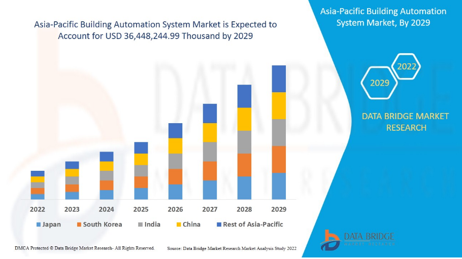 Asia-Pacific building automation system market is expected to gain market growth in the forecast period of 2022 to 2029. Data Bridge Market Research analyses that the market is growing at a CAGR of 10.0% in the forecast period of 2022 to 2029 and is expected to reach USD 36,448,244.99 thousand by 2029
